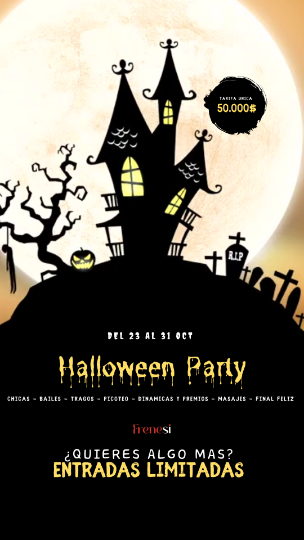 PARTY HALLOWEEN Tendremos todo lo que necesitas para divertirte Hermosas chicas con sexy disfraces Cortesia y picoteo Baile erótico con dos o mas chicas Masajito relajante Oral hasta sacarte toda la lechita ¿QUIERES ALGO MÁS? Todo es conversable con las chicas amor Vamos a pasarla rico TENEMOS CUPOS LIMITADOS PARA ESTA DINAMICA , TE RECOMIENDO RESERVAR