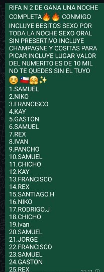 Constanza33 Publicó 7 Dic Autor Publicó 7 Dic On 02-12-2025 at 20:18, Pepe Le Puff dijo: Yo voy con 3 números ...espero ganarsss y conocer a esta muñeca PRONTO Hola amor tu fuiste el ganador de esta rifa felicidades JUEGA EN MI RIFA Y GANA UNA NOCHE COMPLETA CONMIGO INCLUYE BESITOS SEXO ORAL SIN PRESERTIVO INCLUYE VARIOS CONTACTOS EN LA NOCHE CHAMPAGNE COSITAS PARA COMER JUEGA POR SOLO 10 MIL PESITOS ESCRIBEME Y TE MANDO TODA LA INFO 1 Citar