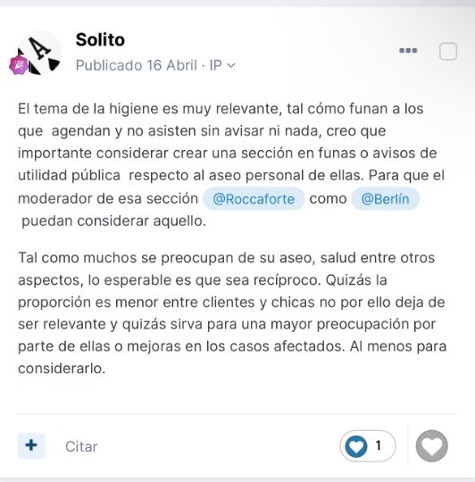 uno espera limpieza e higiene por ambos lados, del cliente y de las chicas, tiene que ser mutuo.