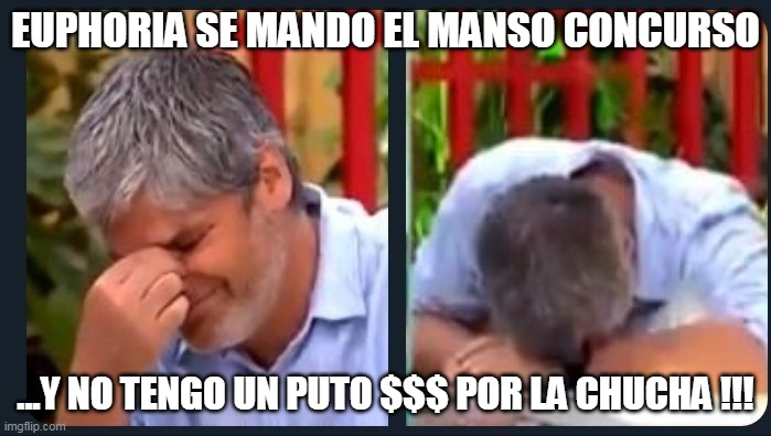 Eduar90 Publicó 28 Jun 2022 Publicó 28 Jun 2022 En 27-06-2022 a las 0:54, Euphoria25 dijo: Primero que todo, gracias por participar , es subjetivo lo que nos hace más reír y como estuvo entretenido (& fueron muuuuy creativos) aumente los ganadores con el servicio en $60.000: 1. @Tester (el primer meme fue el que me taladró la cabeza, no se si ganaba la risa o la maldad )... 2. @Living me encantó el termino tulísimo y la baticueva jaja 3. @Solito sentí que tu meme fue muy sincero, así que demos un retiro como corresponde Ganadores del descuento de $50.000 1. @Perro_negro 2. @LcoMurdok -------‐--‐------- Me quedé con las ganas de ver el meme de @El manuela, salía con error ... Buenas noches Me había ilusionado cuando la linda @Euphoria25 me dijo por interno que le gustaba mi Meme, pero habían mejores por lo que veo jajaja será para la próxima, igual estuvo entretenido el concurso. Felicidades a los ganadores. Citar